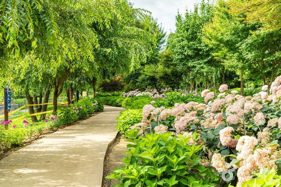 유구천 1㎞ 구간에 수국 약 22종, 16,000본을 심은 중부권 최대 수국 정원이다. 에나멜수국, 목수국 등 다양한 수국을 만나볼 수 있으며, 능수벚나무, 작약, 수선화 등 계절 꽃이 사계절 내내 피어 있어 수국과 함께 관람이 가능하다. 곳곳에 포토존이 마련되어 있어 인생샷 촬영이 가능하다.
