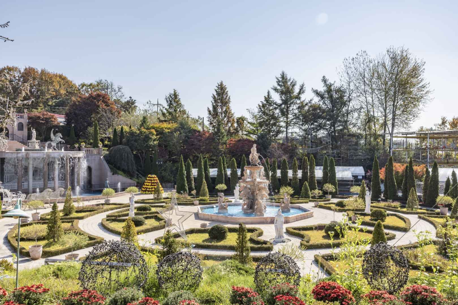 그리스 신화를 테마로 한 자수화단, 하얀 자작나무가 둘러싸고 있는 화이트가든 등지에서 ‘BTS’ 지민이 월간지 화보를 촬영해 많은 팬들이 방문하고 있다.