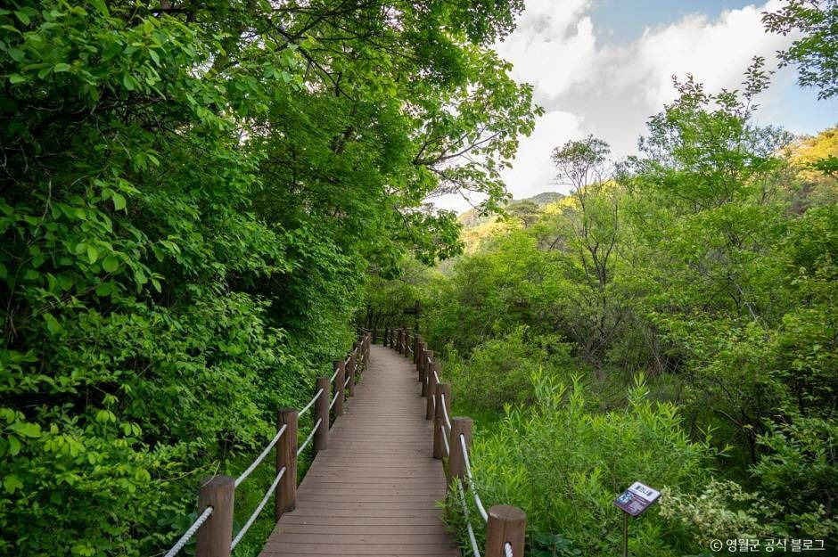 물무리골 생태습지는 강원 고생대 국가지질공원 중 하나인 내륙습지다. 습지 일대에는 급한 경사를 보이는 해발고도 400m 이상의 산지가 발달해 있는데, 이들 산지 사이를 하천이 흐르면서 퇴적물이 이동해 아래쪽에 소규모의 평평한 내륙습지가 형성된 것. 이 같은 석회암 지대의 자연 내륙습지는 학술 가치가 매우 높다. 또 물무리골 생태습지는 조선 단종의 무덤인 장릉과도 이웃하고 있어 사적으로 보호받고 있다. 잘 다듬어진 산책로를 따라 걷다 보면 이곳에 뿌리내린 다양한 식물의 이름과 특징, 개화 시기 등을 설명한 푯말이 꼼꼼하게 붙여져 있다. 하늘 높이 뻗은 전나무숲길에선 시원한 나무 그늘에 쉬어갈 수 있는 평상도 마련돼 있다. 자연 습지라 벌이나 곤충도 다양한데, 입구에 마련된 기피제를 미리 사용하면 보다 안전한 탐방을 즐길 수 있다.