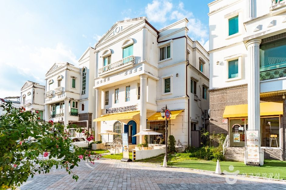 지중해마을은 이국적인 유럽풍 건물이 모여 지중해의 작은 시골 마을을 연상시키는 곳이다. 이 마을은 아산 탕정신도시 조성으로 불가피하게 이주하게 된 이 일대 주민들이 모여 새롭게 일군 마을이다. 아산 탕정신도시 한가운데에 조성되었으며 이색적이고 이국적인 느낌을 주며, 블루 크리스털 빌리지(Blue Crystal Village)라는 별명을 갖고 있다. 이 마을은 도로를 사이에 두고 남서쪽은 붉은 지붕의 성곽 형식이 두드러진 남프랑스의 프로방스 풍으로 꾸며져 있고, 남동쪽은 원형의 파란 지붕과 하얀 벽이 화사한 그리스 산토리니를 모델로 했다. 가장 인기 있는 곳은 포토존으로 천사의 날개, 등대 모양의 빨간 우체통을 배경으로 사진을 찍을 수 있다. 이곳에서는 디자인과 색감이 독특한 건물들을 구경하고, 아기자기한 골목을 걸으면서 카페, 소품점, 옷 가게 등 여러 매장을 둘러보는 즐거움이 있다. 주변에는 온양온천, 현충사, 아산곡교천야영장 등의 관광지가 있어 연계하여 관광할 수 있으며, 경부고속철도 및 장항선 철도 천안아산역이 멀지 않다.